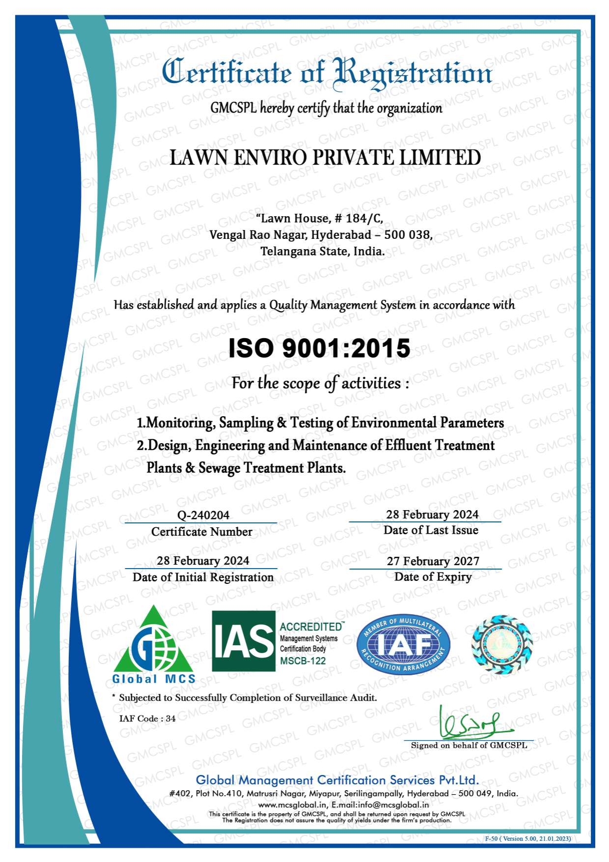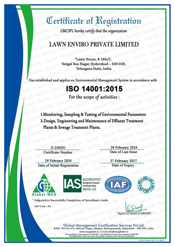Established in 2003 in Hyderabad, Telangana, LAWN ENVIRO PRIVATE LIMITED (formerly M/s. Lawn Enviro Associates) has been at the forefront of Environmental Management and Engineering. With a commitment to excellence, we offer end-to-end services—from project conceptualization to construction and commissioning—catering to diverse facets of environmental sustainability. In addition, our sister concern organization, M/s. PRIDHVI ENVIROTECH PVT. LTD., specializes in Environmental Clearance (EC), Environmental Impact Assessment (EIA) Studies, and other related services. Accredited by NABET, New Delhi, it stands as a trusted name in regulatory compliance and environmental consulting.